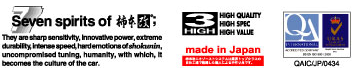 企画・設計・開発・製造という全ての工程において、『7 Spirits』という信念のもとに、『3 High』というコンセプトをかかげ、妥協せず、こだわり、努力し、一旦完成し、商品化されたものでも常に手を加え、さらによりものを求め作り上げることを忘れません。