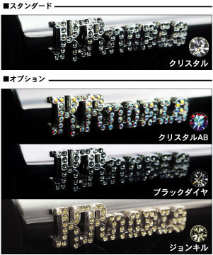クリスタルのカラーは全部で4色。標準色として『クリスタル』、オプションカラーとしてオーロラ加工された人気の『クリスタルAB(オーロラ)』、 シックで高級感ある輝きの『ブラックダイヤ』、ゴールドエンブレムにも相性の良い淡いイエローカラーの『ジョンキル』の3色をご用意。
